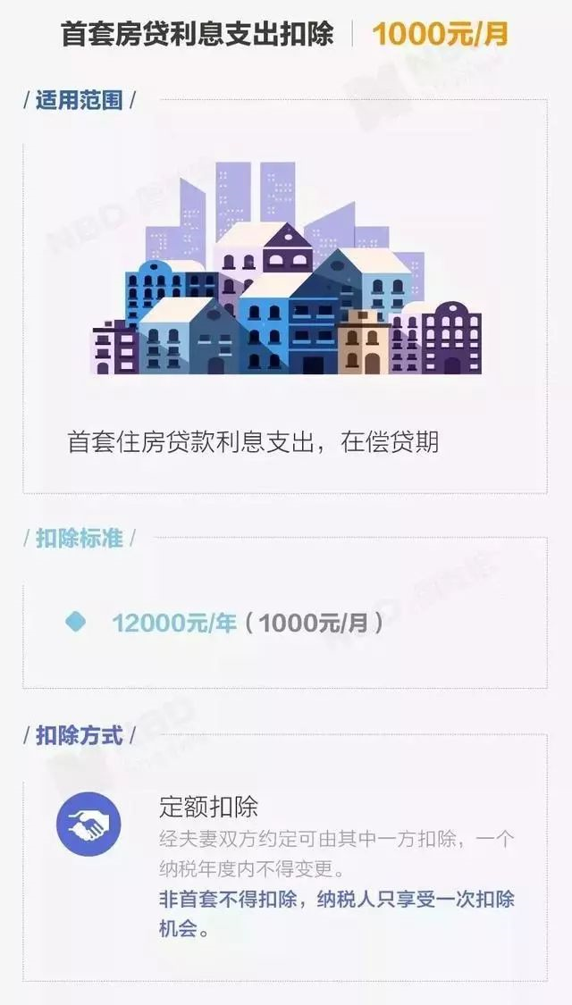 纳税人本人或其配偶购买中国境内住房发生的首套住房贷款利息支出,可以选择由夫妻一方按每月1000元扣除,扣除期限最长不超过240个月(20年)。